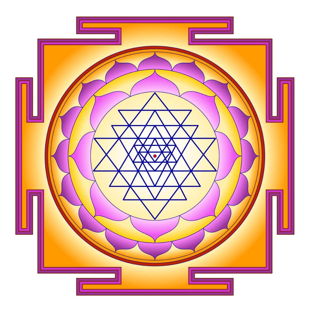 Согласно ведическим писаниям Шри Янтра отражает эволюцию и структуру Вселенной, внутреннее строение тела человека, образ Матери Вселенной.